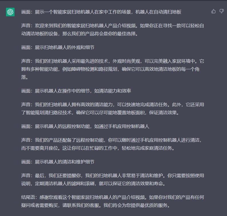 2、从品牌内容分发角度考虑,请为智能家居设备扫地机器人设计一个2分钟时长的产品介绍视频脚本。