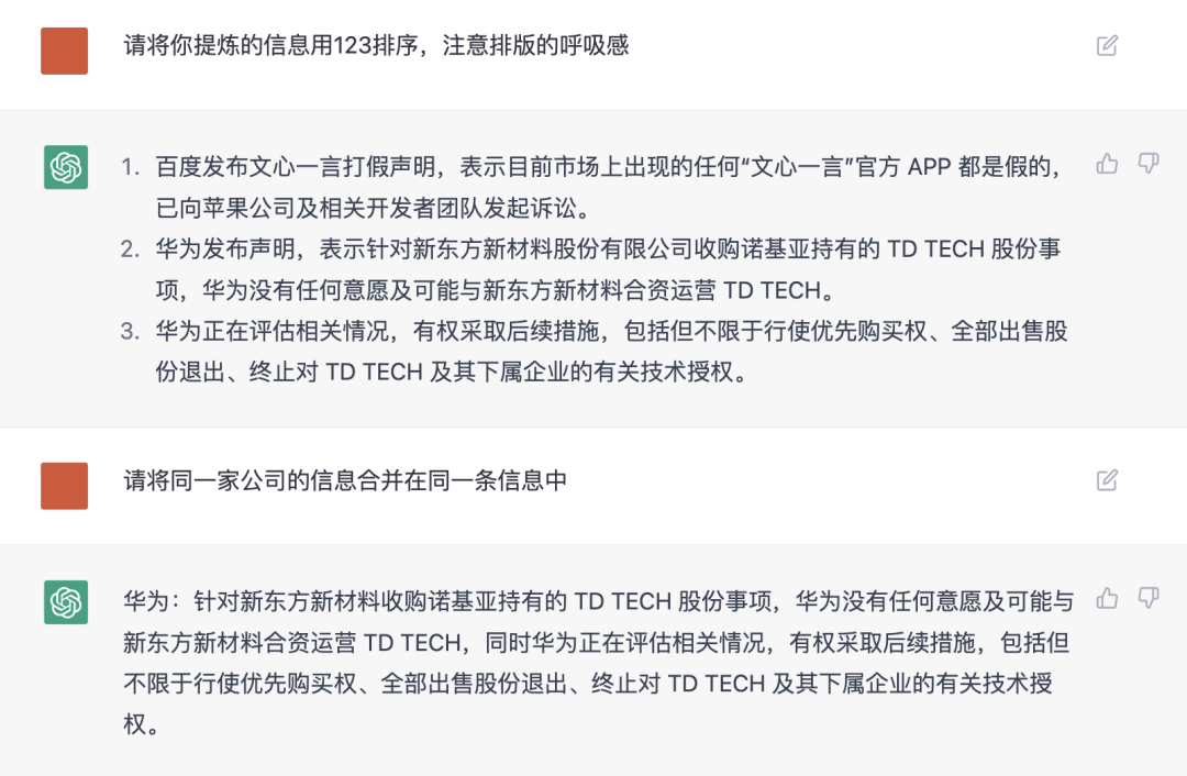 注意:受制于ChatGPT语料库的数据包截止时间是2021年9月,所以最好是先喂养信息给到chatGPT,再根据描述引导做精简排序。
